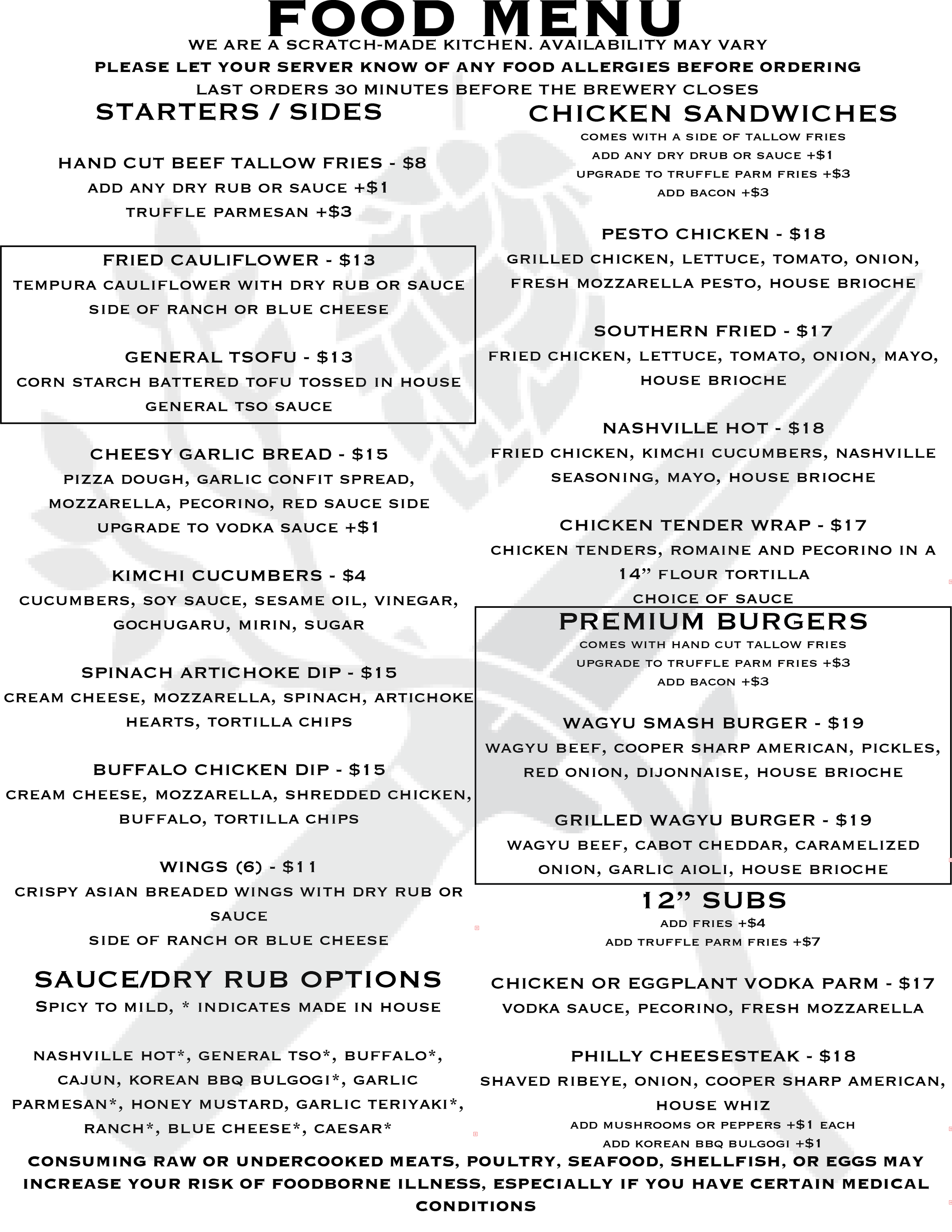 Since most items are made in-house, menu items will be removed from online ordering before they are unavailable in-house.